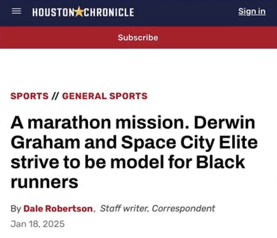 High performance training. Third Ward roots. Unapologetic representation. Explore the features and community spotlights that have covered the rise of Space City Elite as we continue to push the boundaries of distance running in Houston.